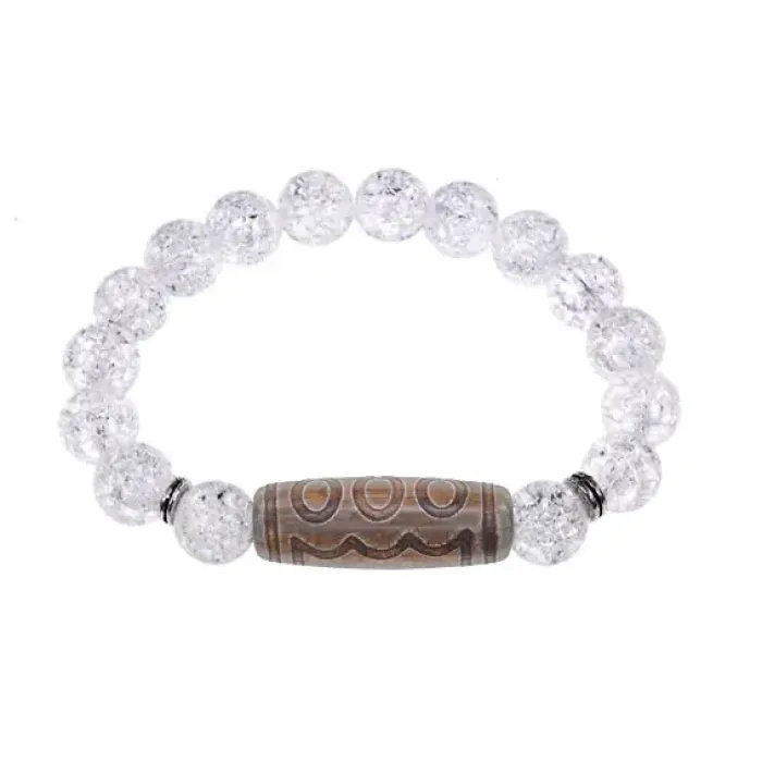 Стрейч-браслет из синтетического камня, украшенный тибетской бусиной Дзи из натурального агата.