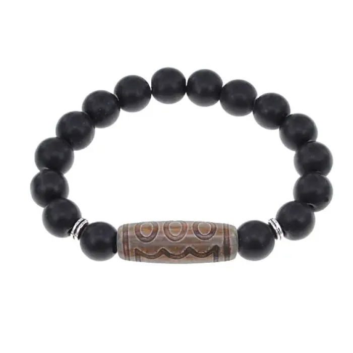 Стрейч-браслет с тибетской бусиной Дзи из агата и синтетическим камнем.