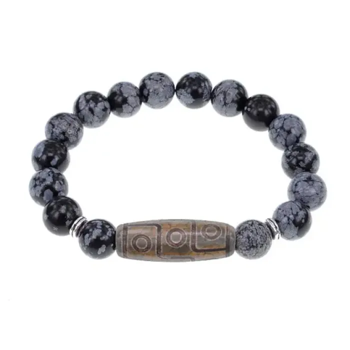 Браслет с 9-глазой бусиной Дзи и нат.камнем Снежный обсидиан BSDS-23-14