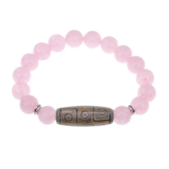 Браслет с 9-глазой бусиной Дзи и нат.камнем Розовый кварц BSDS-23-15