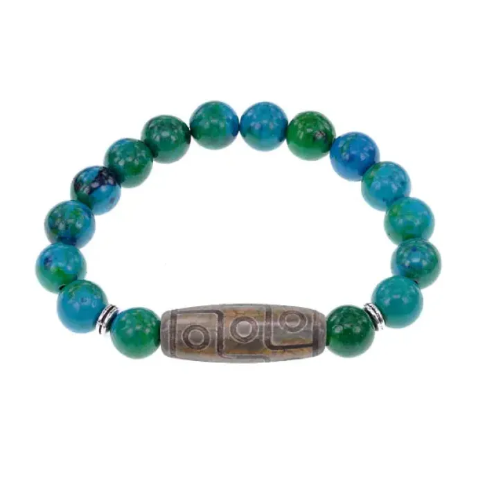 Браслет с 9-глазой бусиной Дзи и синт. камнем Хризоколла BSDS-23-21