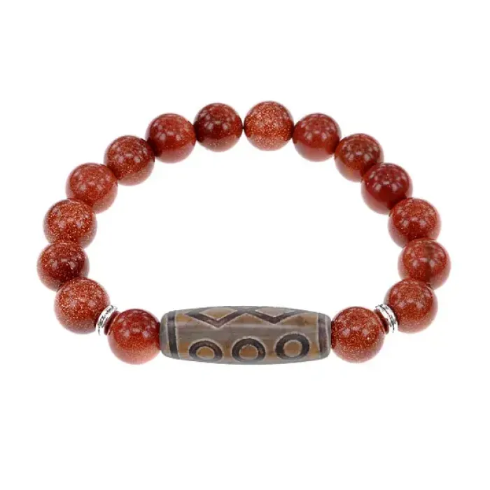 Стрейч-браслет с тибетской бусиной Дзи из агата и синтетическим камнем, имитирующим коричневый авантюрин.