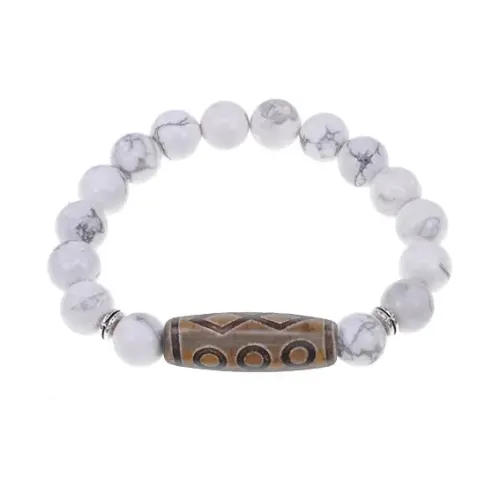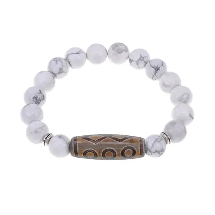 Стрейч-браслет для ношения, сочетающий тибетскую бусину Дзи из агата и натуральный камень кахолонг.