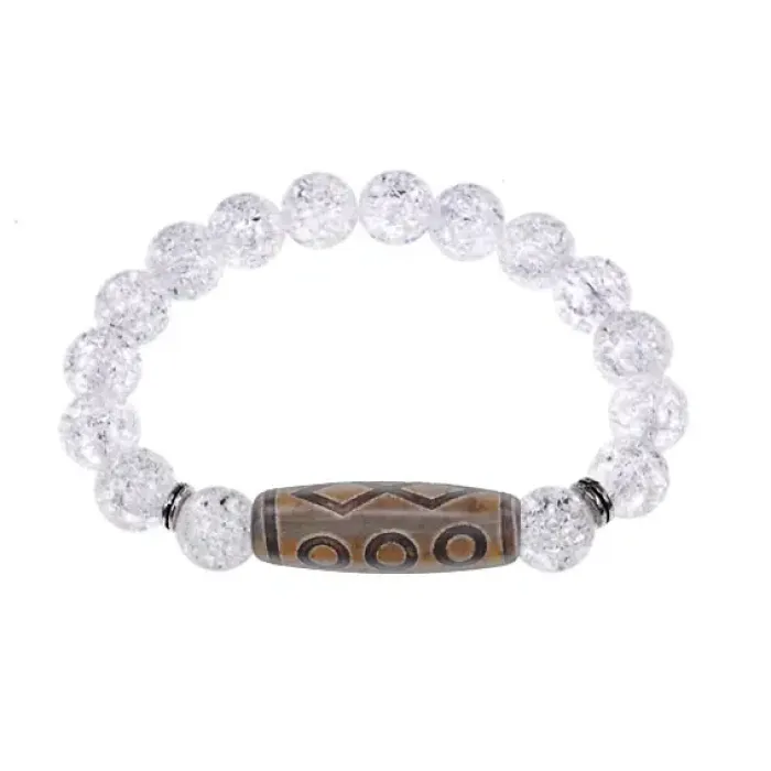 Стрейч-браслет из синтетического камня, украшенный тибетской бусиной Дзи из натурального агата.