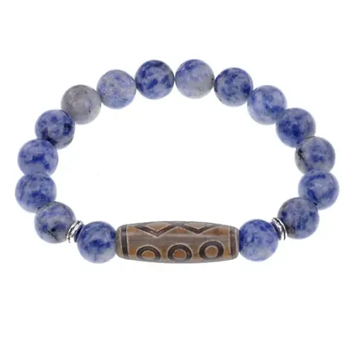 Стрейч-браслет из натурального камня с тибетской бусиной Дзи.
