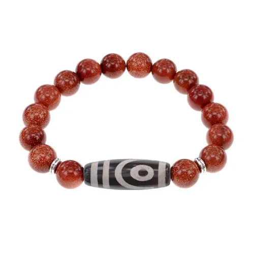 Стрейч-браслет из синтетического камня с тибетской бусиной Дзи из агата.