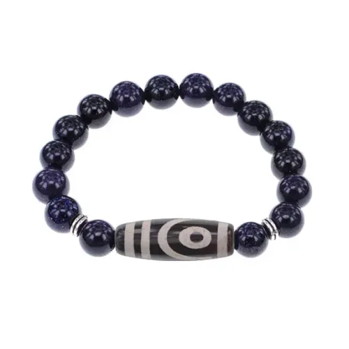 Браслет с 2-глазой бусиной Дзи и синт.камнем Синий авантюрин BSDS-26-02