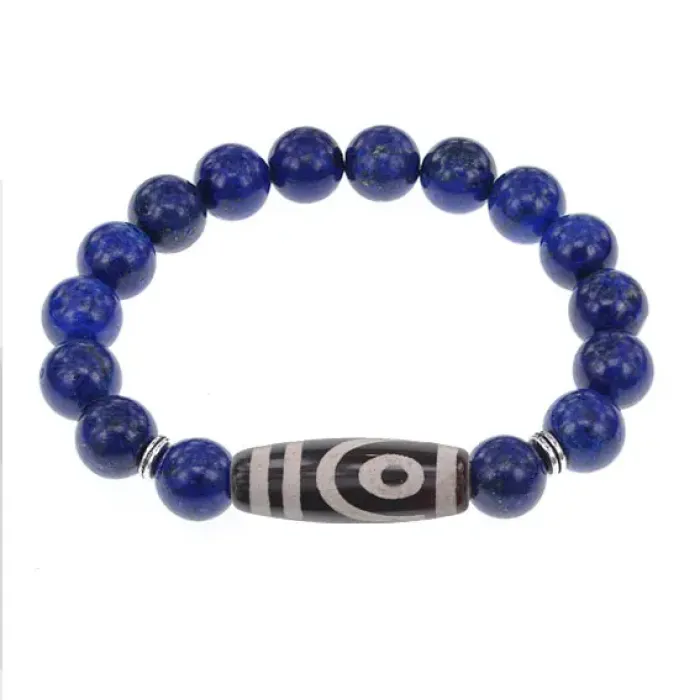Стрейч-браслет из натурального камня лазурита с тибетской бусиной Дзи из агата.