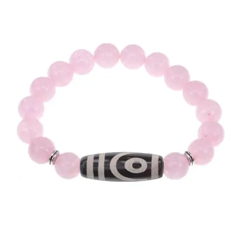 Браслет с 2-глазой бусиной Дзи и нат.камнем Розовый кварц BSDS-26-15