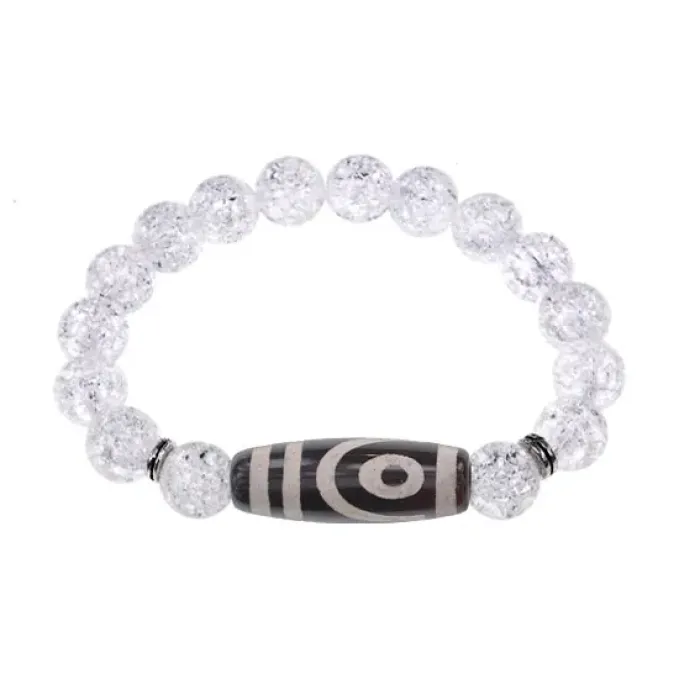 Стрейч-браслет из синтетического камня, украшенный тибетской бусиной Дзи из натурального агата.