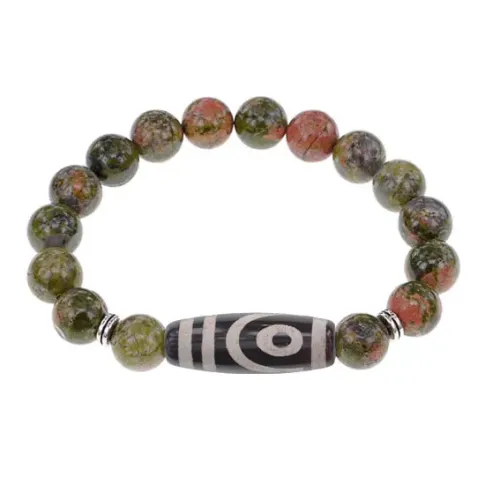 Браслет с 2-глазой бусиной Дзи и нат.камнем Унакит BSDS-26-20