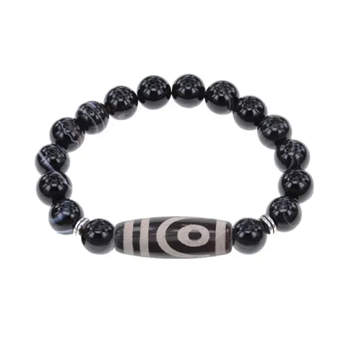 Стрейч-браслет из натурального черного агата с тибетской бусиной Дзи.