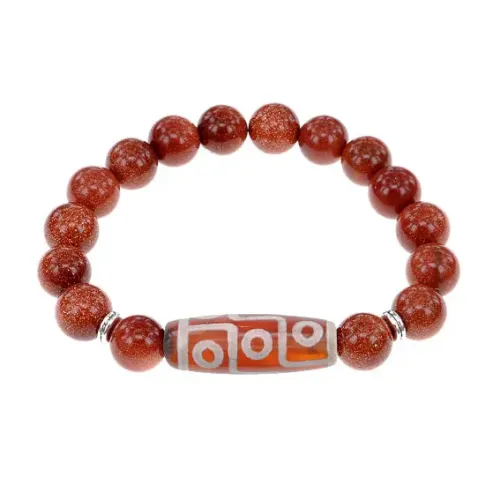 Браслет с 9-глазой бусиной Дзи и синт.камнем Коричневый авантюрин BSDS-27-01