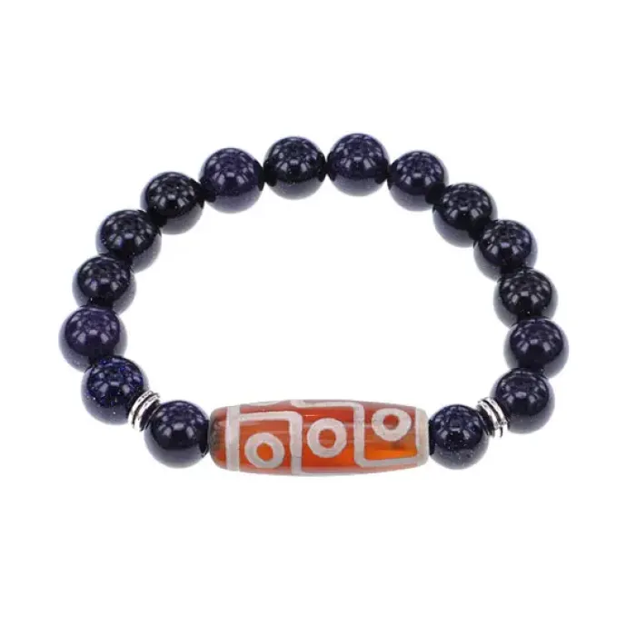 Стрейч-браслет из синтетического камня, имитирующего синий авантюрин, с тибетской бусиной Дзи из натурального агата.