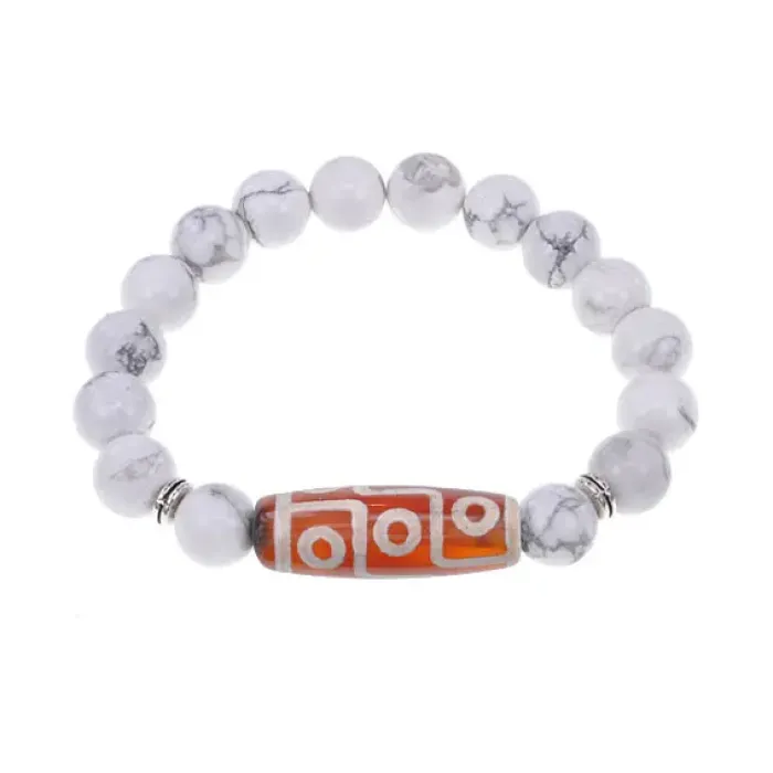 Стрейч-браслет из натурального камня кахолонг с тибетской бусиной Дзи из агата.