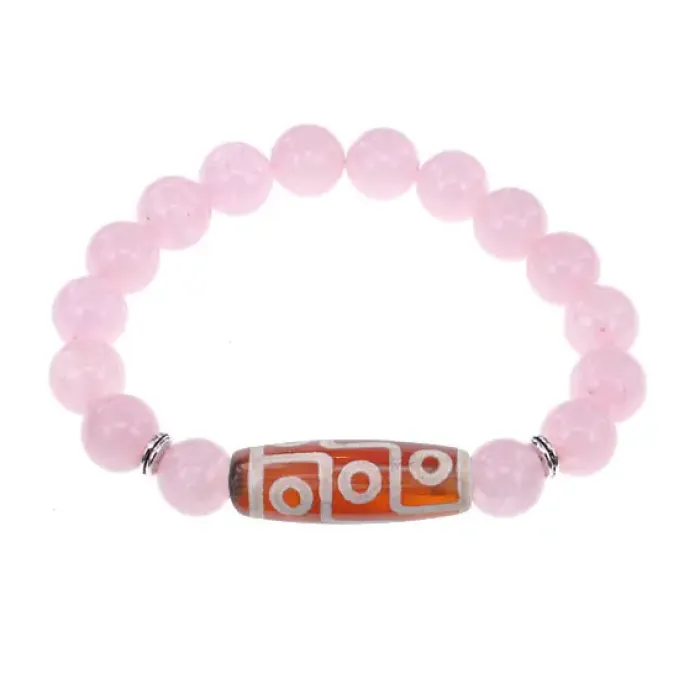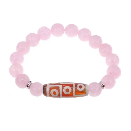 Браслет с 9-глазой бусиной Дзи и нат.камнем Розовый кварц BSDS-27-15