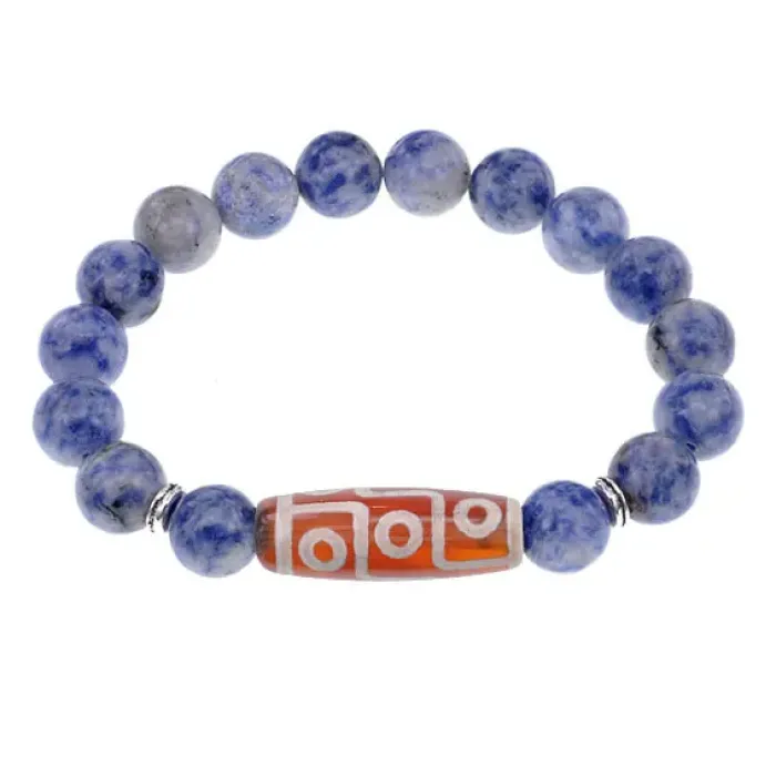 Стрейч-браслет из натурального камня с тибетской бусиной Дзи из агата и бусинами содалита.