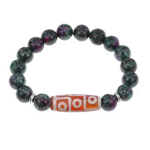 Браслет с 9-глазой бусиной Дзи и синтетическим камнем Цоизит BSDS-27-22