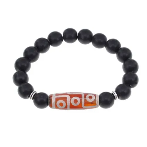 Браслет с 9-глазой бусиной Дзи и синтетическим камнем Шунгит BSDS-27-24
