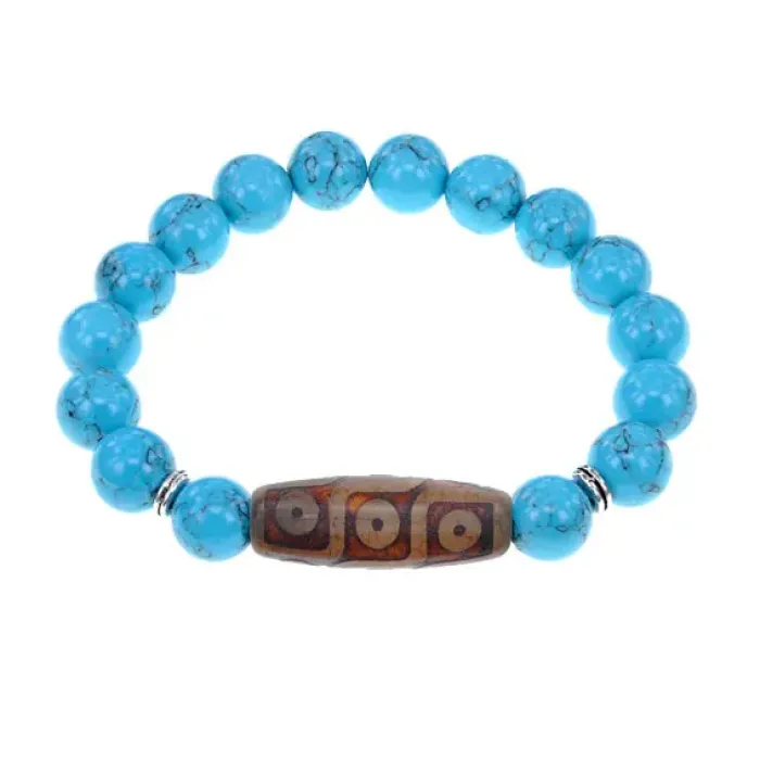 Браслет с 9-глазой бусиной Дзи и синт.камнем Бирюза BSDS-28-05