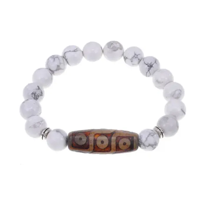 Стрейч-браслет из натурального камня кахолонг с тибетской бусиной Дзи из агата.