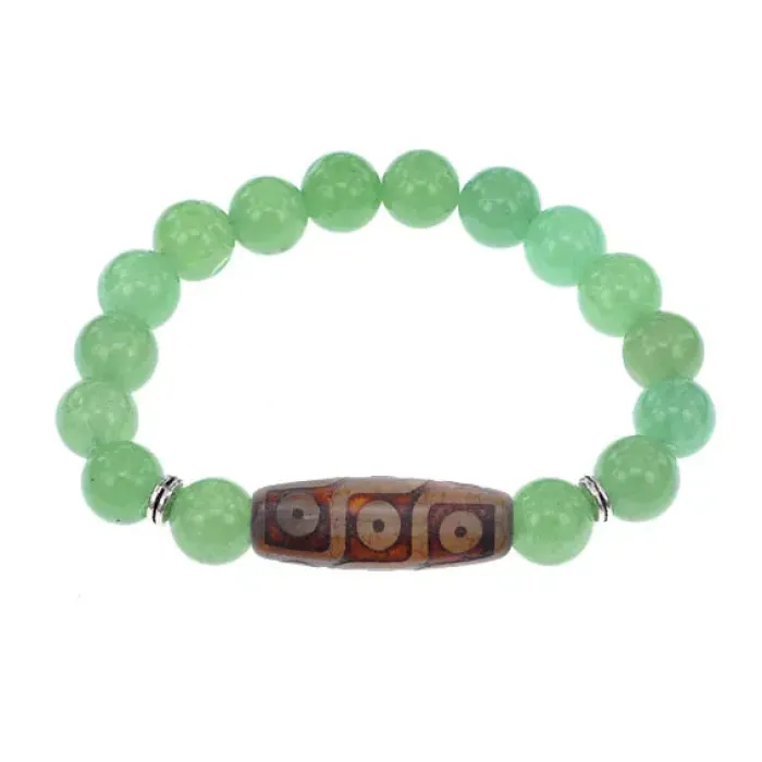 Стрейч-браслет из натурального камня, украшенный тибетской бусиной Дзи из агата.