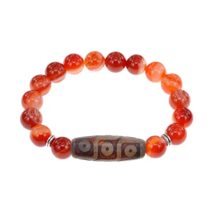 Браслет с 9-глазой бусиной Дзи и нат.камнем Сердолик BSDS-28-17
