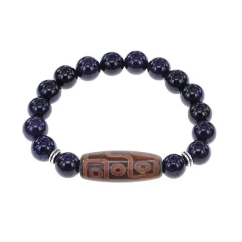 Браслет с 9-глазой бусиной Дзи и синт. камнем Синий авантюрин BSDS-29-02
