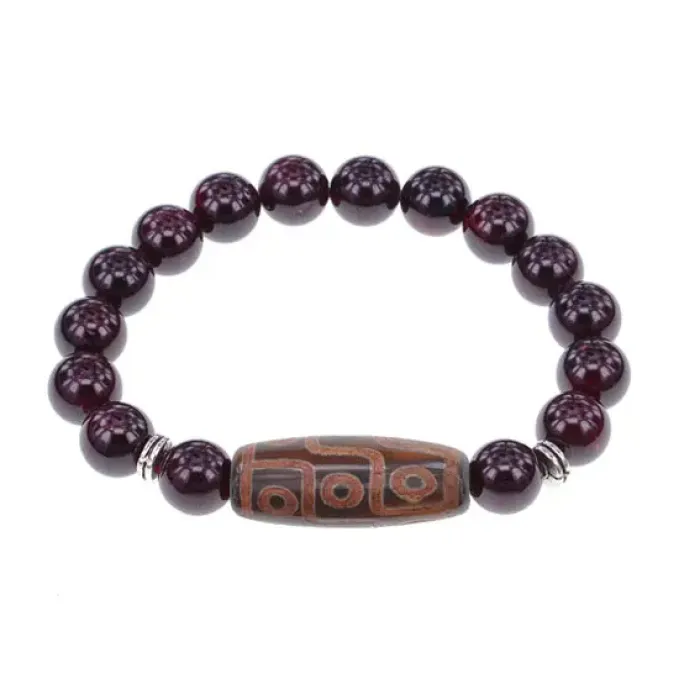 Браслет с 9-глазой бусиной Дзи и нат.камнем Гранат BSDS-29-06
