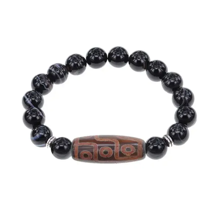 Браслет с бусиной Дзи и натуральным черным агатом. Изготовлен из стрейч-материала.