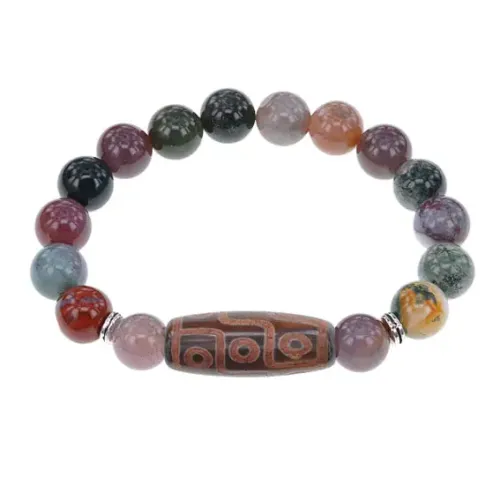 Стрейч-браслет из натурального камня яшмы с тибетской бусиной Дзи из агата.