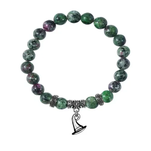 Браслет из синтетического камня цоизит с подвеской в виде шляпы.