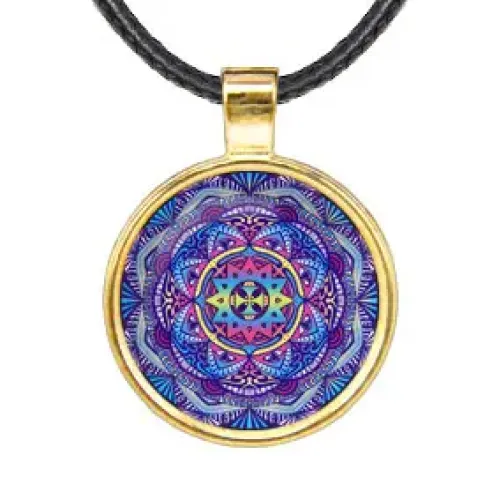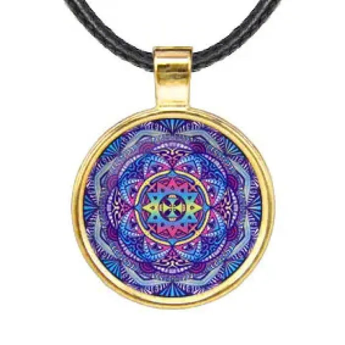 Амулет Мандала Исцеления — это уникальный аксессуар, который сочетает в себе красоту и символику. С диаметром 28 мм, он выполнен из бижутерного сплава с покрытием под золото, что придаёт ему элегантный вид. В комплект входит чёрный шнурок с застёжкой, позволяющий удобно носить амулет на шее.