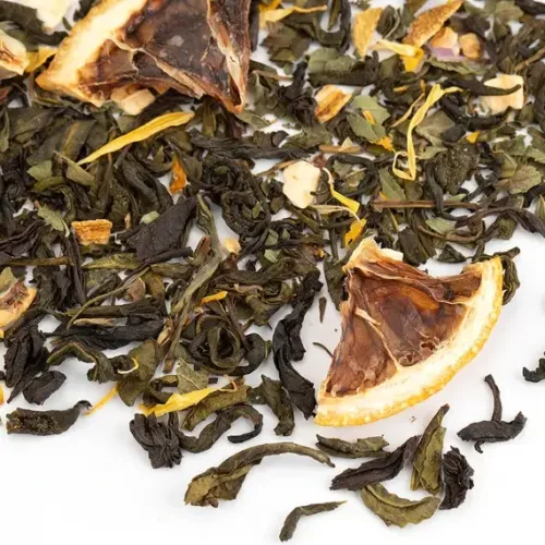Смесь зелёного и чёрного чая, создающая насыщенный, многослойный настой. Свежий цитрусовый аромат с медовыми и цветочными нотами переходит во вкус с яркой цитрусовой свежестью и прохладным оттенком мяты.