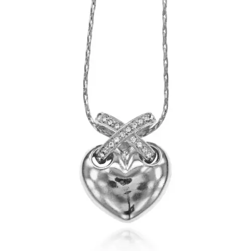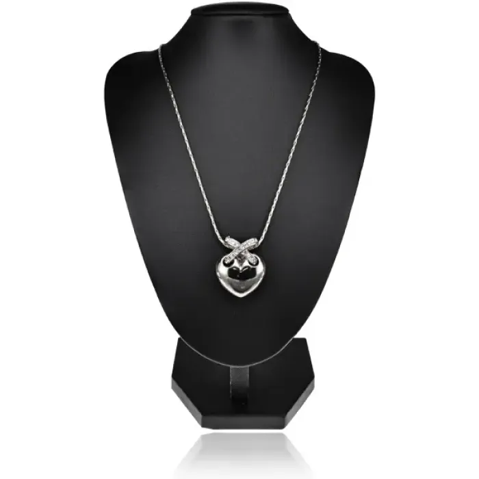 Бижутерный кулон в форме сердца со стразами и серебристым покрытием.