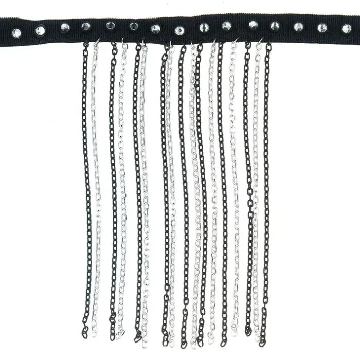 Чокер для украшения шеи из эластичной ленты со стразами и цепочками, с замком типа лобстер.