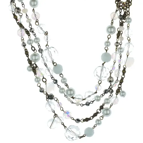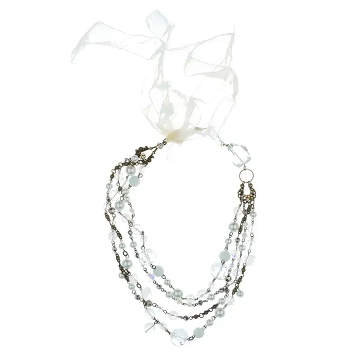 Бижутерное колье из искусственного жемчуга, кристаллов и страз на тканевой основе.