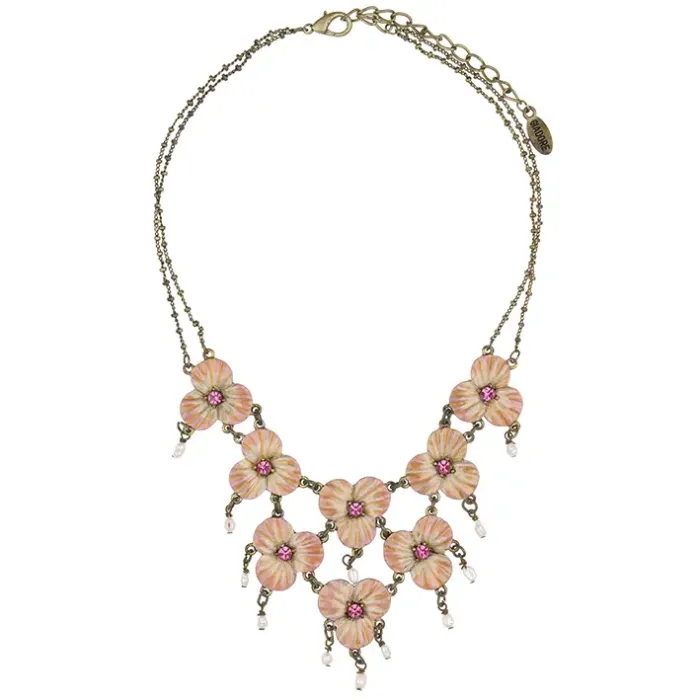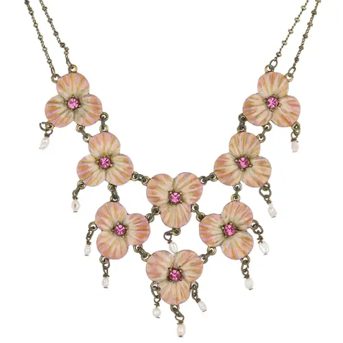 Бижутерное колье с цветочным дизайном, стразами и искусственным жемчугом.