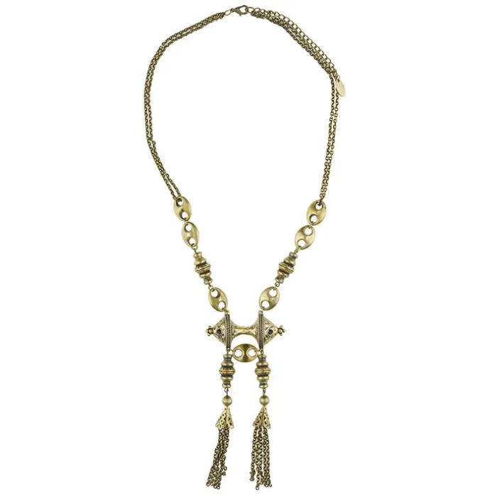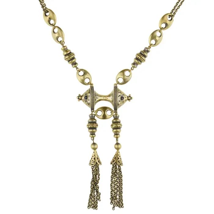 Колье из бижутерного сплава с покрытием под бронзу.