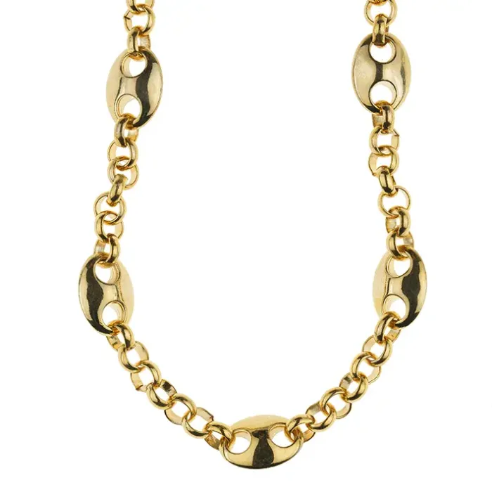 Цепочка из бижутерного сплава с разнотипными звеньями.