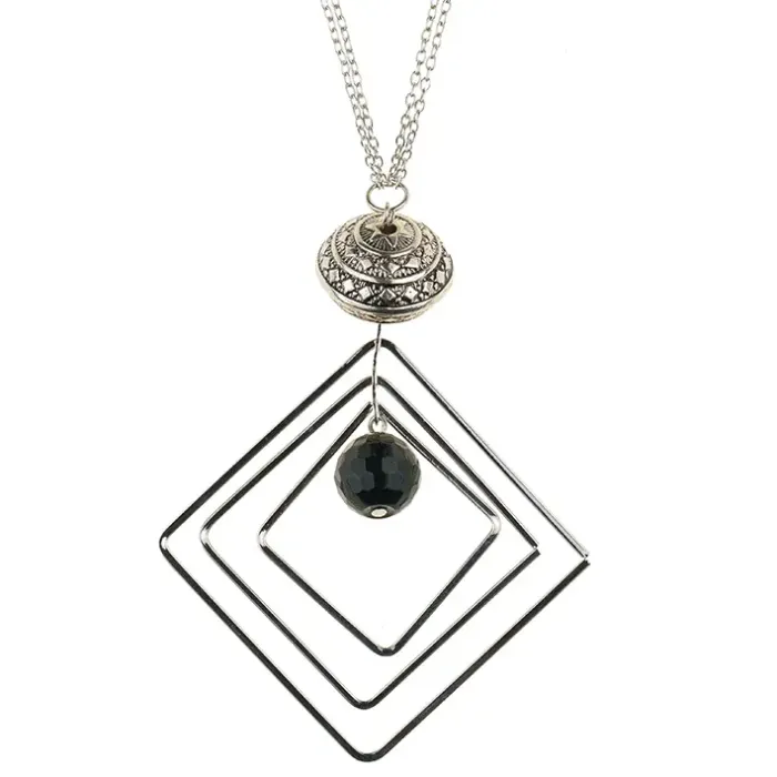Колье Ромбы с бусиной UG061 — это стильное украшение, которое добавит изысканности любому образу. Изготовлено из бижутерного сплава и покрыто под серебро, оно будет радовать своим блеском и долговечностью. Вставки из кристаллов придают изделию особый шарм и элегантность.