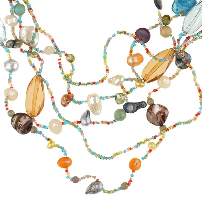 Бусы из перламутра и дерева с вставками из кристаллов.