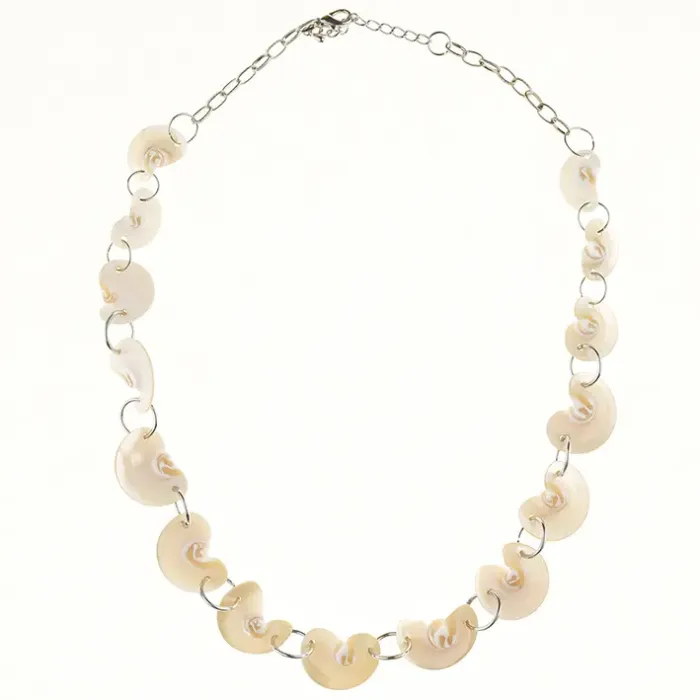 Колье из ракушек UG078 — это элегантное украшение, которое привносит в образ нотки морской свежести и природной красоты. Изготовлено из бижутерного сплава с добавлением перламутра, что придаёт изделию уникальный блеск и текстуру.