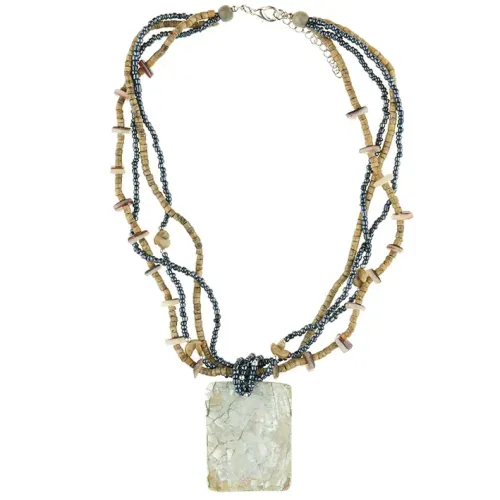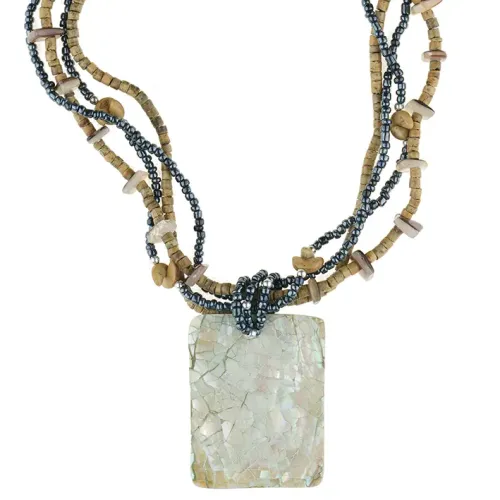 Колье из дерева, бисера и перламутра с пластиной-коннектором.