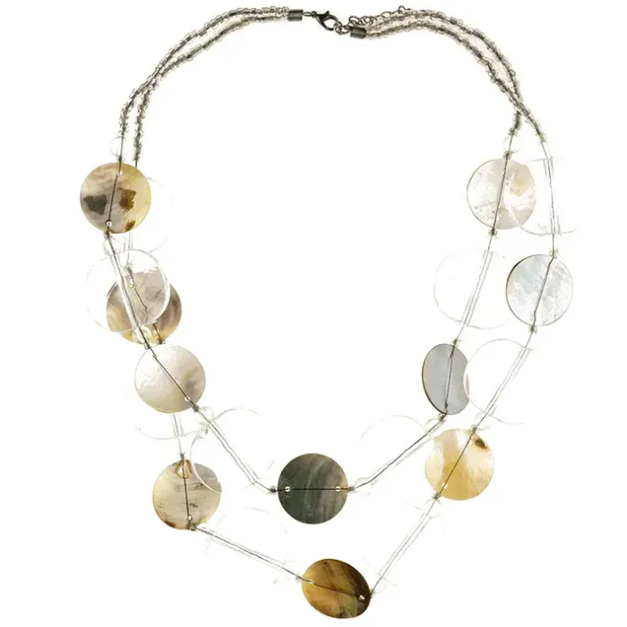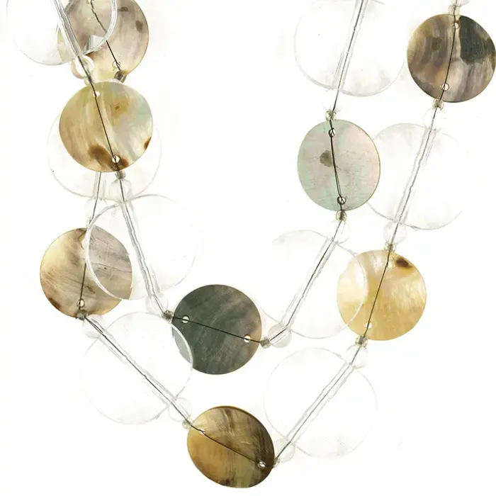 Колье из бисера, перламутра и кристаллов с дизайном в морской тематике.