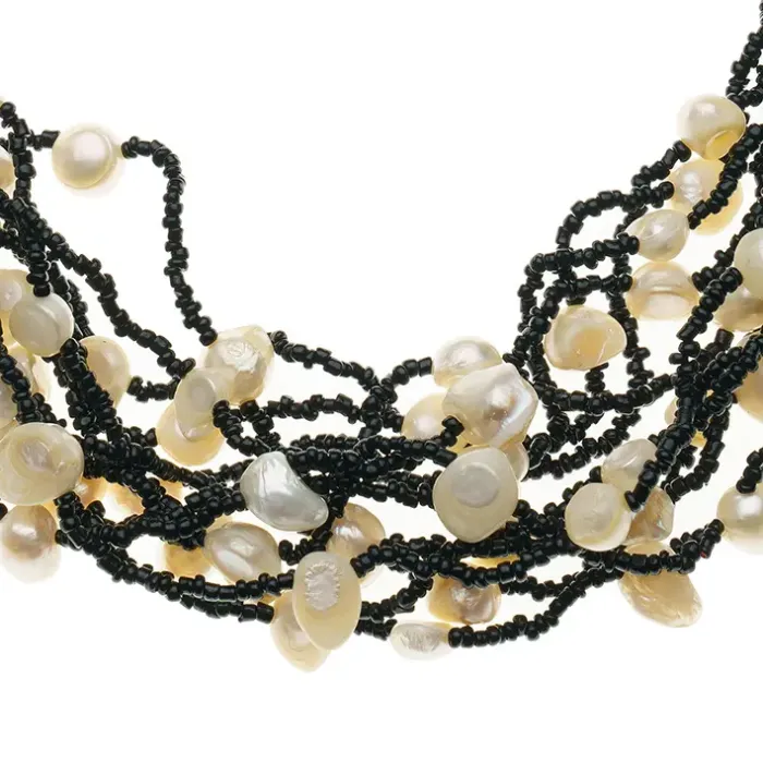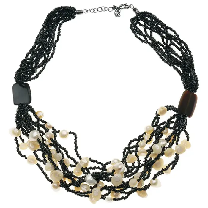 Это изысканное колье с речным жемчугом станет великолепным дополнением к любому образу. Оно символизирует чистоту и гармонию, а также традиционно ценится за свою красоту и уникальность. Изготовлено из качественного бисера и жемчуга, это украшение привнесет нотку элегантности в повседневный стиль.