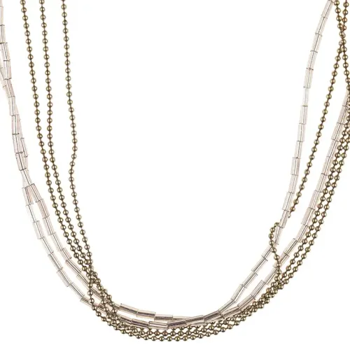 Колье-цепочка из бижутерного сплава и бисера в нежно-розовом цвете с покрытием под серебро.