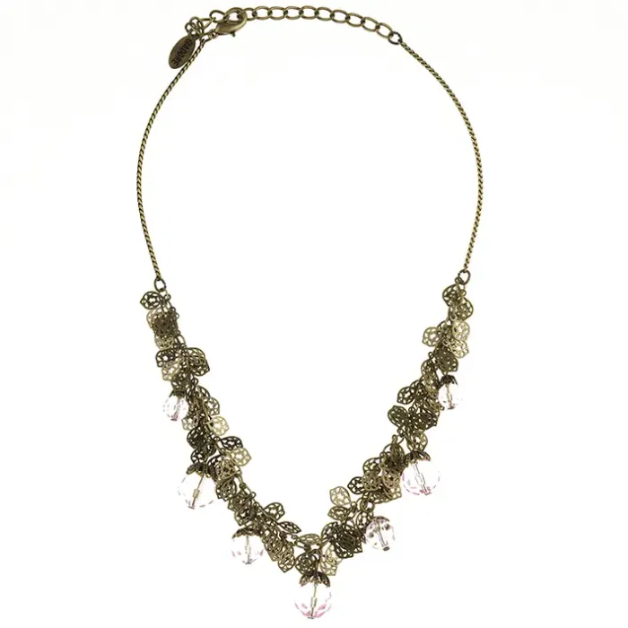 Колье кристаллы и листья, цвет розовый UG105-02