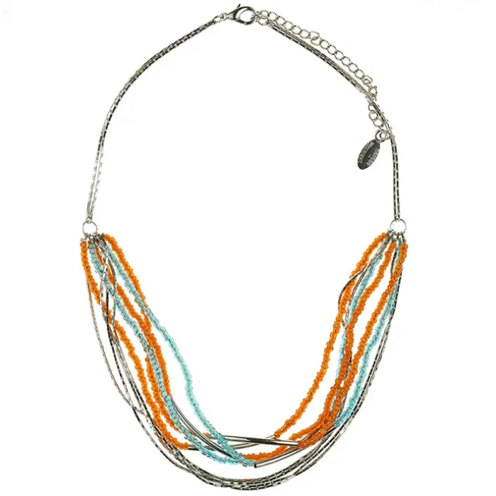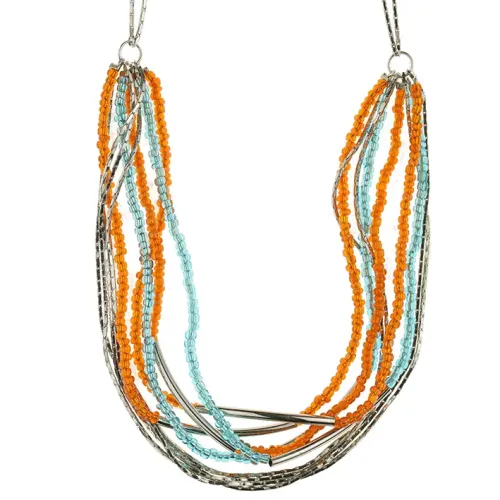Колье из бисера, цвет оранжевый с голубым UG117-02