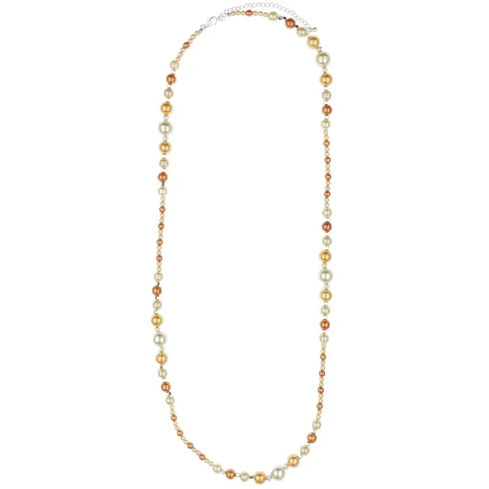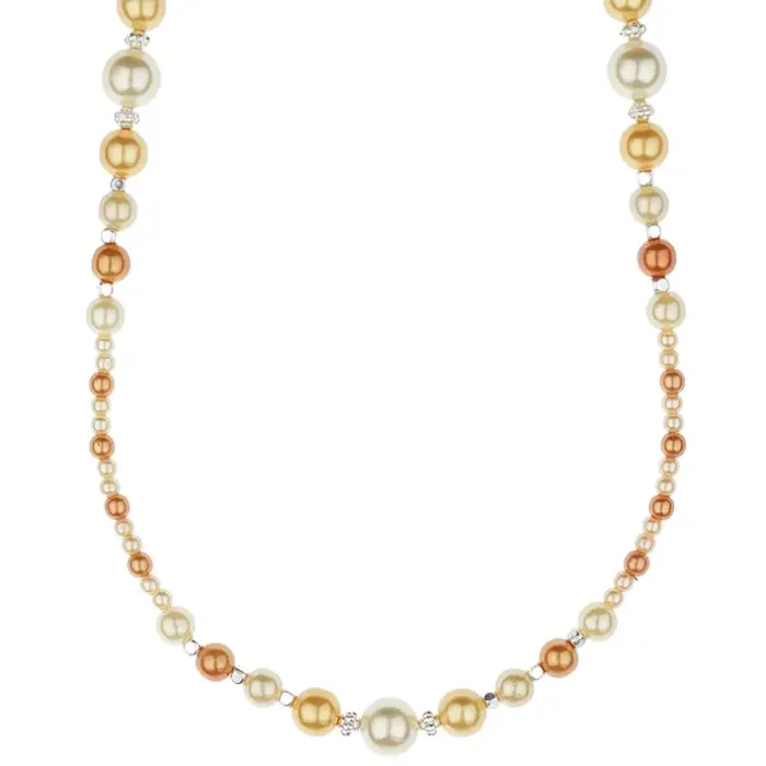 Колье-бусы из бижутерного сплава и искусственного жемчуга типа майорка с покрытием под серебро.